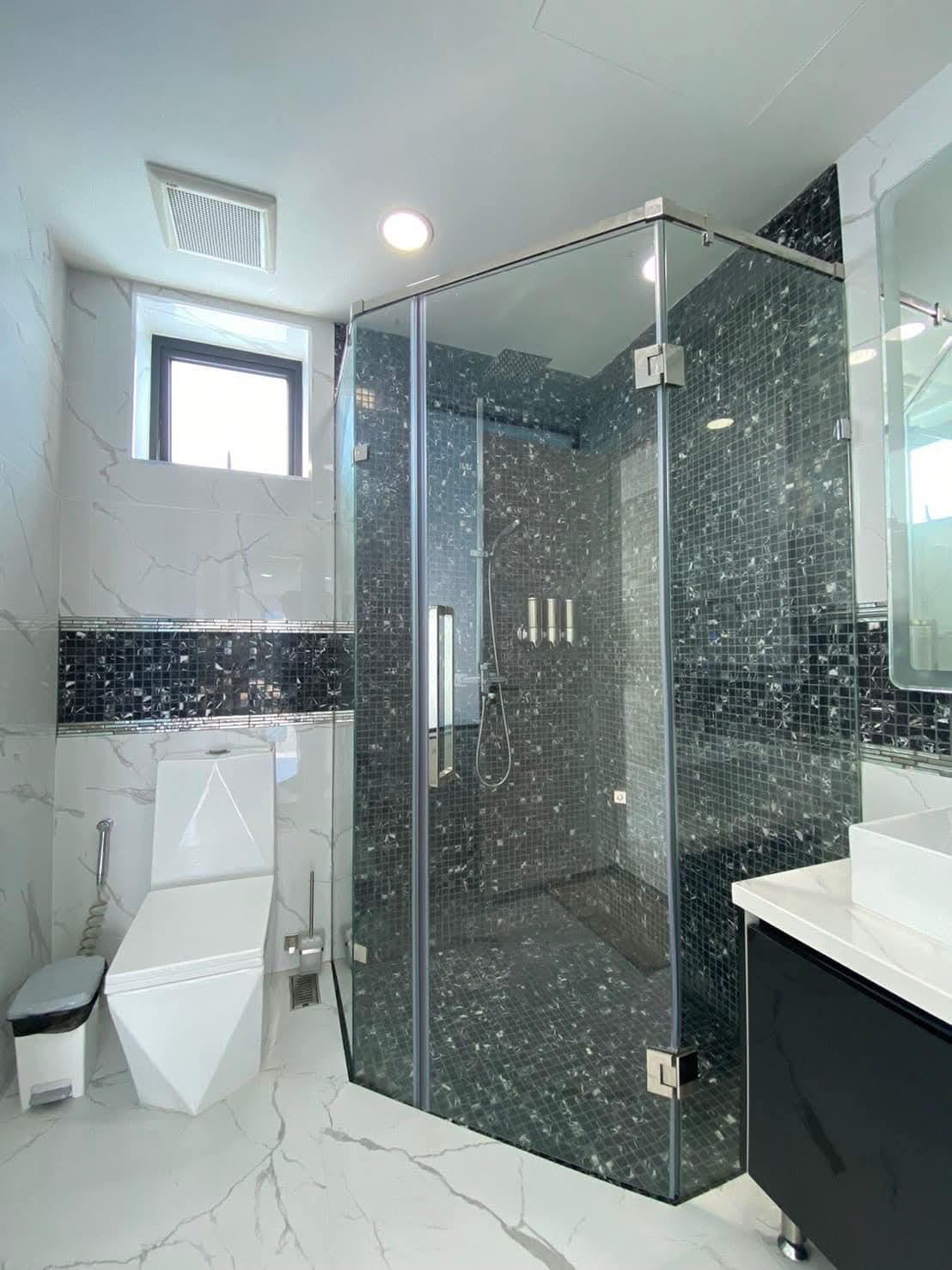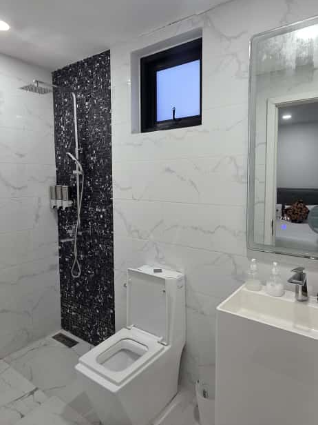 Bedroom 2This warm and welcoming bedroom features a king-size bed with a soft duvet, elegant side tables, and soothing ambient lighting for a relaxing stay. The room includes an attached bathroom with a modern glass shower, offering both style and comfort.