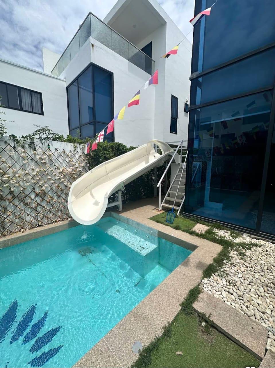 Experience comfort and luxury in this spacious 4-bedroom Pattaya villa, perfect for families and groups. Spread across 3 floors, it offers king and queen bedrooms with attached bathrooms, a master room with bathtub, a huge living area, 2 billiards tables, a fully equipped kitchen, garden, private pool with jacuzzi, and ample parking. Party-friendly with 24-hour celebrations allowed, and just 10–15 minutes from Walking Street and major attractions.